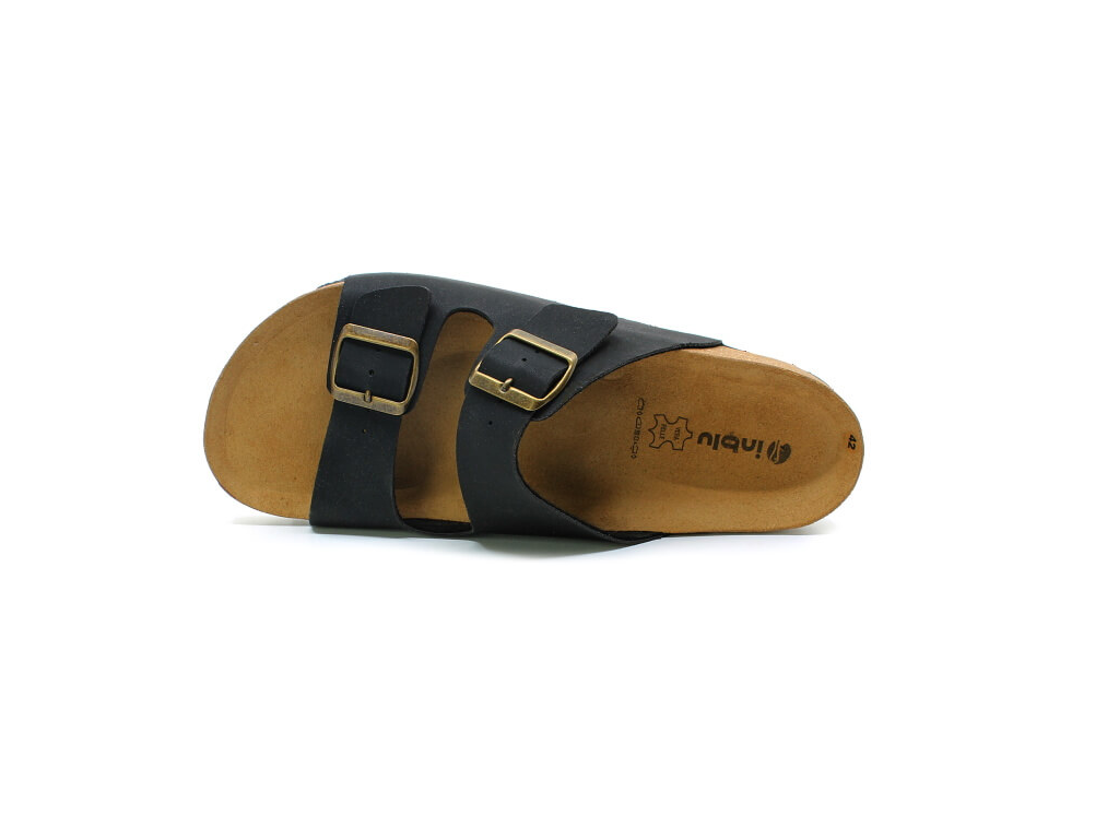 Pánské vycházkové pantofle Inblu v černé barvě. Svršek i podšívka jsou vyrobeny ze syntetické kůže. Pantofle jsou vybaveny vyměkčenou koženou stélkou, která poskytuje příjemný došlap. Pásky jsou regulovatelné.